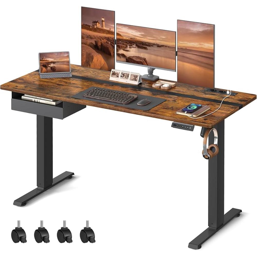 Songmics Μεταλλικό Ηλεκτρικά Ρυθμίζόμενο γραφείο 140 x 60 x 72-120 cm Ξύλινου Φινιρίσματος Χρώματος καφέ (LSD114X01) (SNGLSD114X01)