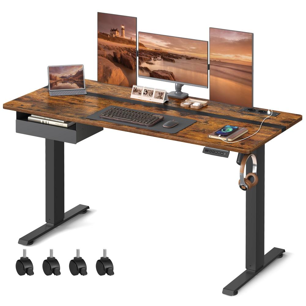 Songmics Μεταλλικό Ηλεκτρικά Ρυθμίζόμενο γραφείο SNGLSD116X01-1&2 160 x 70 x 72-120 cm Ξύλινου Φινιρίσματος Χρώματος καφέ - (LSD116X01) (SNGLSD116X01)