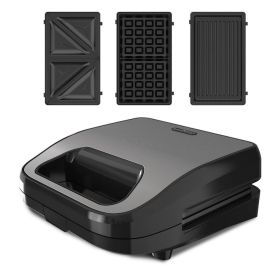 Η τοστιέρα από ανοξείδωτο χάλυβα διαθέτει εναλλάξιμες πλάκες για ποικιλία επιλογών μαγειρέματος.