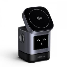 Ο μαγνητικός ασύρματος φορτιστής UGREEN αποτελεί μια ευέλικτη και αποδοτική λύση για τις ανάγκες φόρτισης. Διαθέτει έναν καινοτόμο σχεδιασμό και κορυφαία χαρακτηριστικά που προσφέρουν ταχύτητα και σταθερότητα. Φόρτιση 15W για smartphones και 5W για ακουστικά, προσφέροντας ταυτόχρονη φόρτιση πολλών συσκευών. Θύρα USB-C 5W για smartwatch. Οθόνη LED με emojis που αλλάζουν ανάλογα με τη φάση φόρτισης. Αναδιπλούμενος και συμπαγής σχεδιασμός για εύκολη μεταφορά. Ρυθμιζόμενη λειτουργία βάσης για χρήση κατά τη διάρκεια βιντεοκλήσεων ή περιήγησης.