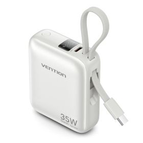 VENTION 10000mAh Mini Power Bank (USB-C + USB-C/Lightning) with Built-in USB-C and Lightning Cables 45W Beige (FKMN0) (VENFKMN0)