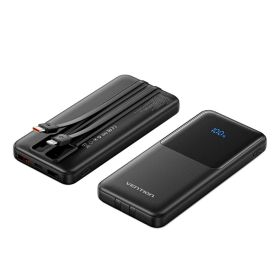 VENTION 10000mAh Power Bank (Micro-USB + USB-C + USB-A/USB-A) with Built-in USB-C and Lightning Cables 22.5W Black LED Display Universal Type (FHOB0-TY) (VENFHOB0-TY)