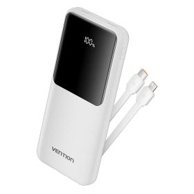 VENTION 10000mAh Power Bank (USB-C + USB-A) with Built-in Cable 22.5W White LED Display Type (XGYW0-39-TY) (VENXGYW0-39-TY)