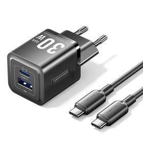 VENTION 2-Port USB (C + A) GaN Charger (30W/30W) with 3A USB-C to USB-C Cable (1M) EU-Plug Gray (TZ-FCEH0-EU) (VENTZ-FCEH0-EU)